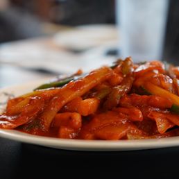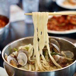The tteokbokki and noodles are top tier here! The stir fried rice cakes are soft yet chewy and comes loaded with veggies, an egg, and fish cakes. The sauce is spicy with a hint of sweetness. The noodles are really the star of this place as seen by their name. The portions are extremely generous and come packed with seafood. The staff are really nice and it is okay if you can't speak Korean! The one thing I would say to skip on is the steamed beef dumplings - the shrimp are better, but I think in general there are better items on the menu. I am interested in trying the other types of dumplings though.
