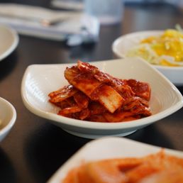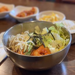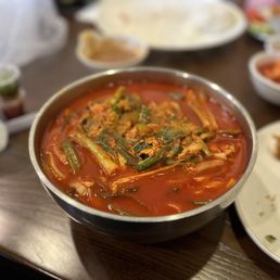 Great noodles! We had the tofu seafood noodles and you only need to order 1 dish as the portions are HUGE! The soup is not as spicy as I thought. The noodles were not soggy and plenty of seafood! We started with the mixed vegetable and meat steamed dumplings. They were on point. Soft with a tasty filling. The waitress was very attentive and offered extra side dishes! Not bad for 3 dishes at about $50. This street alone has so many Korean offerings from bakery to food. I recommend highly!